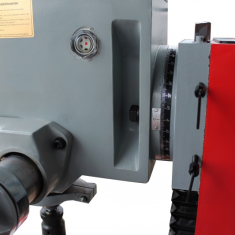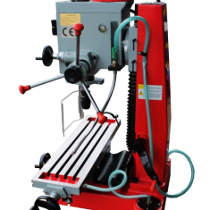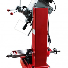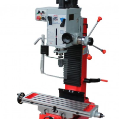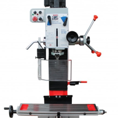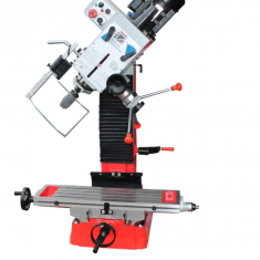 Głowica przekładni odchylana, z precyzyjną regulacją wysokości dzięki prowadnicy o przekroju w kształcie jaskółczego ogona (360°), prowadnice o przekroju w kształcie jaskółczego ogona gwarantujące największą dokładność, stół krzyżowy z rowkami teowymi 14mm zapewniającymi szybkie i proste ustawienie imadła, dosuw tulei wrzecionowej poprzez trójramienną dźwignię i precyzyjne koło ręczne z podziałką głębokości, odchylana osłona uchwytu zaciskowego z pleksiglas, opcjonalna podstawa maszyny z praktyczną półką na narzędzia.