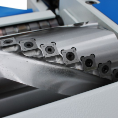 - spiralnie uzębiony wał wprowadzający zapewniający perfekcyjny transport elementu obróbki,