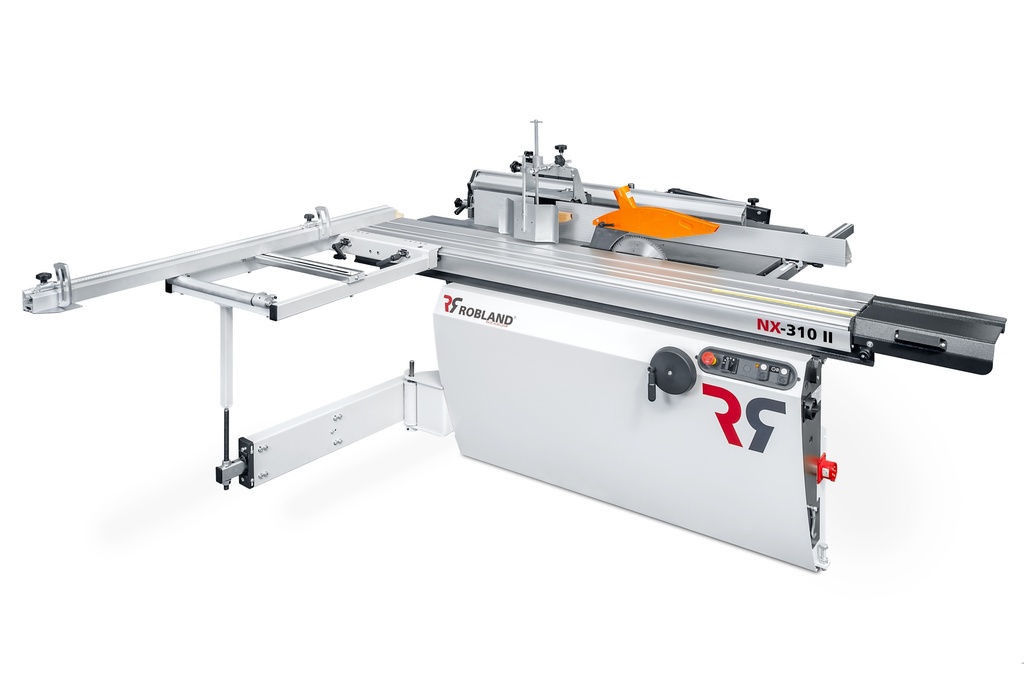 - Stół wysięgnikowy NX (540 x 815 mm) na ramieniu teleskopowym, Ogranicznik poprzeczny X (1150 - 2550 mm) z dwoma odwracalnymi zderzakami