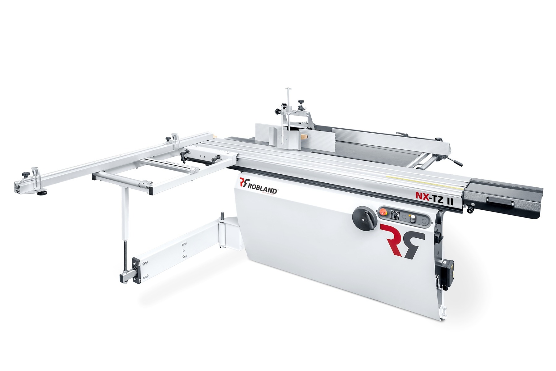 - Stół wysięgnikowy NX (540 x 815 mm) na ramieniu teleskopowym, Ogranicznik poprzeczny X (1550 - 2550 mm) z dwoma odwracalnymi zderzakami