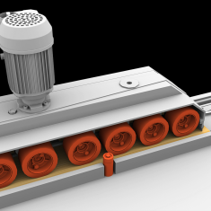 - Wysokiej jakości produkty końcowe - jedyny i największy model z 6 rolkami w ofercie; idealne rozwiązanie do podawania długich i ciężkich elementów (np. części okien i drzwi). Dzięki 3 rolkom wejściowym i 3 rolkom wyjściowym można z powodzeniem transportować nawet najcięższe elementy.