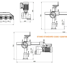 - statyw STANDARD: długość pionowa kolumny - 540 mm, długość pozioma kolumny - 705 mm