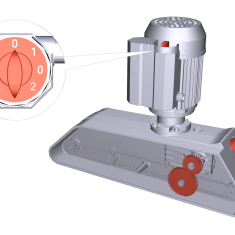 - Szybka konfiguracja za pomocą zębatek - przełącznik prędkości umożliwia szybkie ustawienie 1 i 2 prędkości posuwu oraz szybką zmianę kierunku posuwu tam i z powrotem. Pierwsze 4 prędkości uzyskuje się poprzez zamianę wewnętrznych kół zębatych. Podczas obracania dźwigni zmiany biegów można łatwo i szybko uzyskać dodatkowe 4 prędkości.