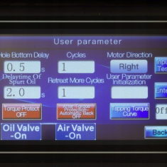 - W trybie automatycznym maszyna umożliwia gwintowanie na zadaną głębokość, a następnie automatyczny powrót z wcześniej ustawionymi prędkościami obrotowymi. Wszystkie tryby pracy pozwalają na odczyt aktualnej głębokości, na jakiej znajduje się gwintownik, co zapewnia dodatkową kontrolę nad procesem.