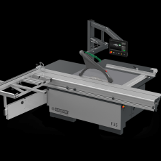 - F 35 Typ 3 to elastyczna i wygodna piła stołowa z przesuwem, idealna dla nowoczesnych przedsiębiorstw. Dzięki zmotoryzowanej prowadnicy równoległej i opcjonalnemu systemowi DIGIT L, a także interpolacyjnym ruchom osi, zapewnia wysoki poziom wygody i precyzji.