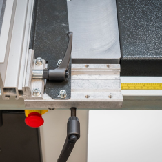 - Nasza żeliwna prowadnica wzdłużna jest również wyposażona w funkcję precyzyjnej regulacji, która pozwala z łatwością dokonywać precyzyjnych poprawek. Ten poziom elastyczności jest cechą charakterystyczną naszych maszyn, zapewniającą każdemu użytkownikowi możliwość uzyskania idealnej konfiguracji dostosowanej do jego konkretnych wymagań.