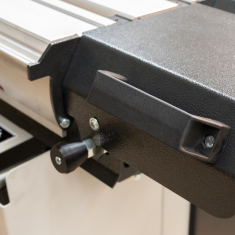 - Nasza żeliwna prowadnica wzdłużna jest również wyposażona w funkcję precyzyjnej regulacji, która pozwala z łatwością dokonywać precyzyjnych poprawek. Ten poziom elastyczności jest cechą charakterystyczną naszych maszyn, zapewniającą każdemu użytkownikowi możliwość uzyskania idealnej konfiguracji dostosowanej do jego konkretnych wymagań.