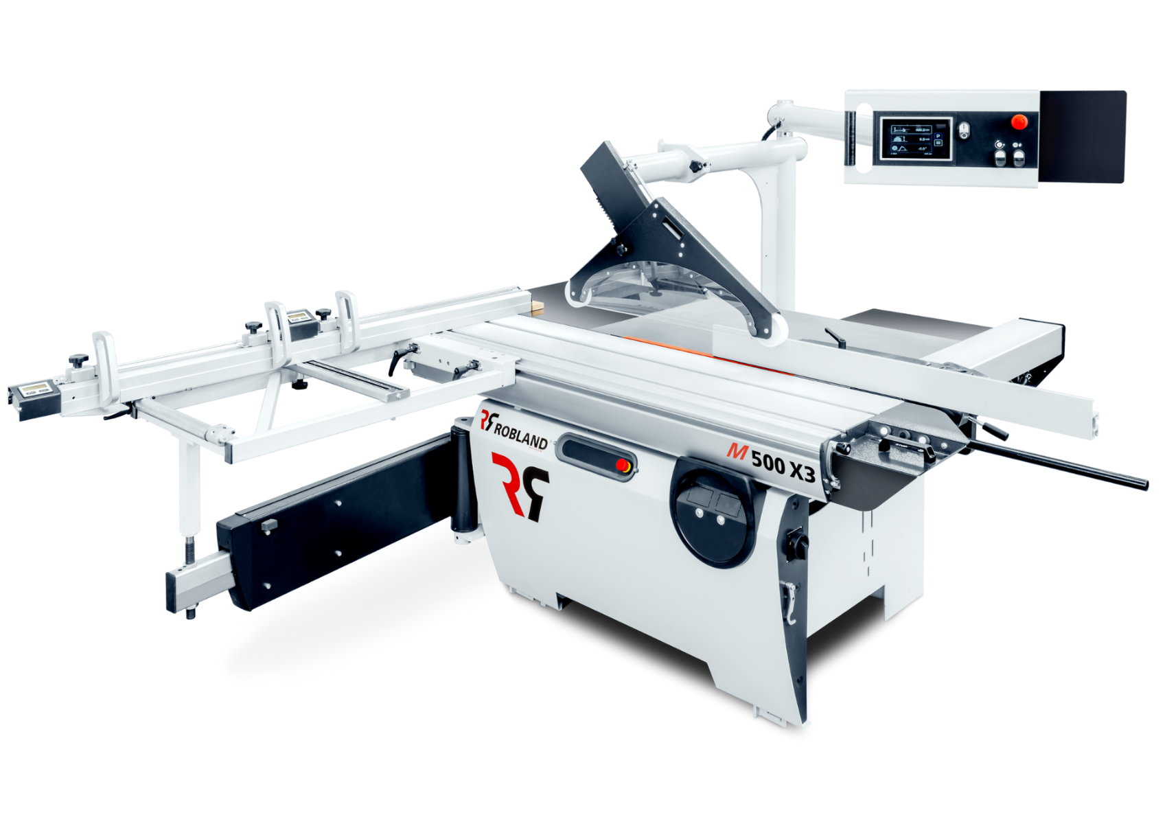 - M 500 X3 (7-calowy ekran dotykowy – numeryczne sterowanie prowadnicy równoległej, wysokość i kąt tarczy piły).