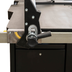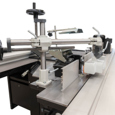 - Stół wysięgnikowy (540 x 970 mm) na ramieniu teleskopowym, Ogranicznik poprzeczny Z3 (1550 - 2550 mm) z dwoma odwracalnymi zderzakami