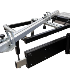 - Stół wysięgnikowy (540 x 970 mm) na ramieniu teleskopowym, Ogranicznik poprzeczny Z3 (1600 - 2550 mm) z dwoma odwracalnymi zderzakami