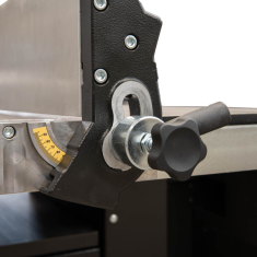 - Pokrętło z analogowym odczytem nachylenia brzeszczotu (tylko w wersji M)
