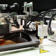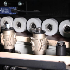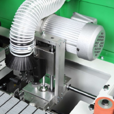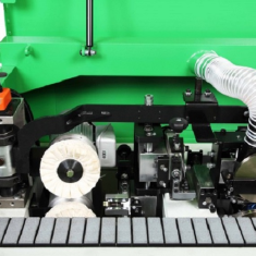 - Jednostka wstępnego frezowania- dwie głowice diamentowe frezujące zapewniają, że krawędź obrabianego przedmiotu jest całkowicie prosta w stosunku do materiału klejonego.