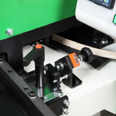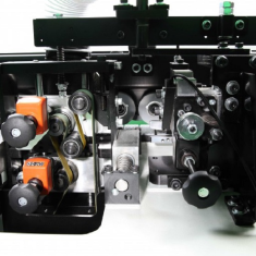- Rolka dociskowa- jednostka rolki dociskowej poprawia wiązanie pomiędzy krawędzią, a materiałem. Jednostka jest mechanicznie dociskana sprężyną, odpowiednia do systemu konfiguracji oraz można dostosować ją dokładnie do wymaganej grubości krawędzi.