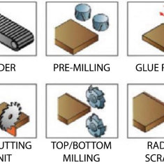 Cyklina promieniowa precyzyjnie dostraja promień krawędzi i usuwa nadmiar kleju. - Jednostka do cięcia końcowego podwójna piłka zapewnia doskonałe cięcie nawet w przypadku okleiny 3 mm.