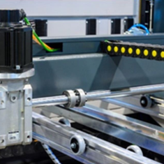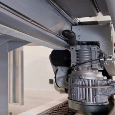 - Popychacz porusza się po dwóch solidnych belkach o profilu „H”, wykorzystując precyzyjne koła zębate i listwy zębate.