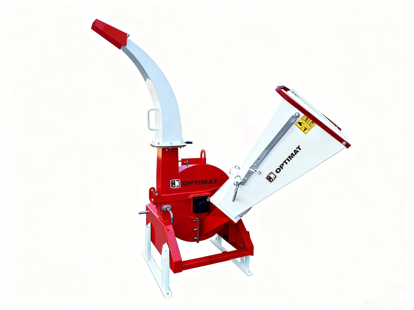 OPTIMAT BIZON 1 to wydajny, profesjonalny rębak do gałęzi i drewna przeznaczony do współpracy z ciągnikiem wyposażonym w wałek odbioru mocy (WOM). Maszyna idealnie sprawdza się przy rozdrabnianiu gałęzi, konarów i pni o średnicy do 100 mm, zapewniając szybkie i efektywne przygotowanie zrębków drzewnych.