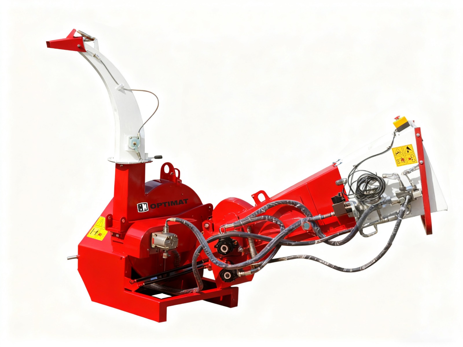 OPTIMAT BIZON 3 to nowoczesny, ciężki rozdrabniacz tarczowy z hydraulicznym podajnikiem, przeznaczony do współpracy z ciągnikami o mocy od 18 KM wzwyż. Maszyna umożliwia rozdrabnianie gałęzi i pni o średnicy do 100 mm, a dzięki dwóm hydraulicznym wałkom podającym zapewnia szybkie, płynne i bezpieczne podawanie materiału.
