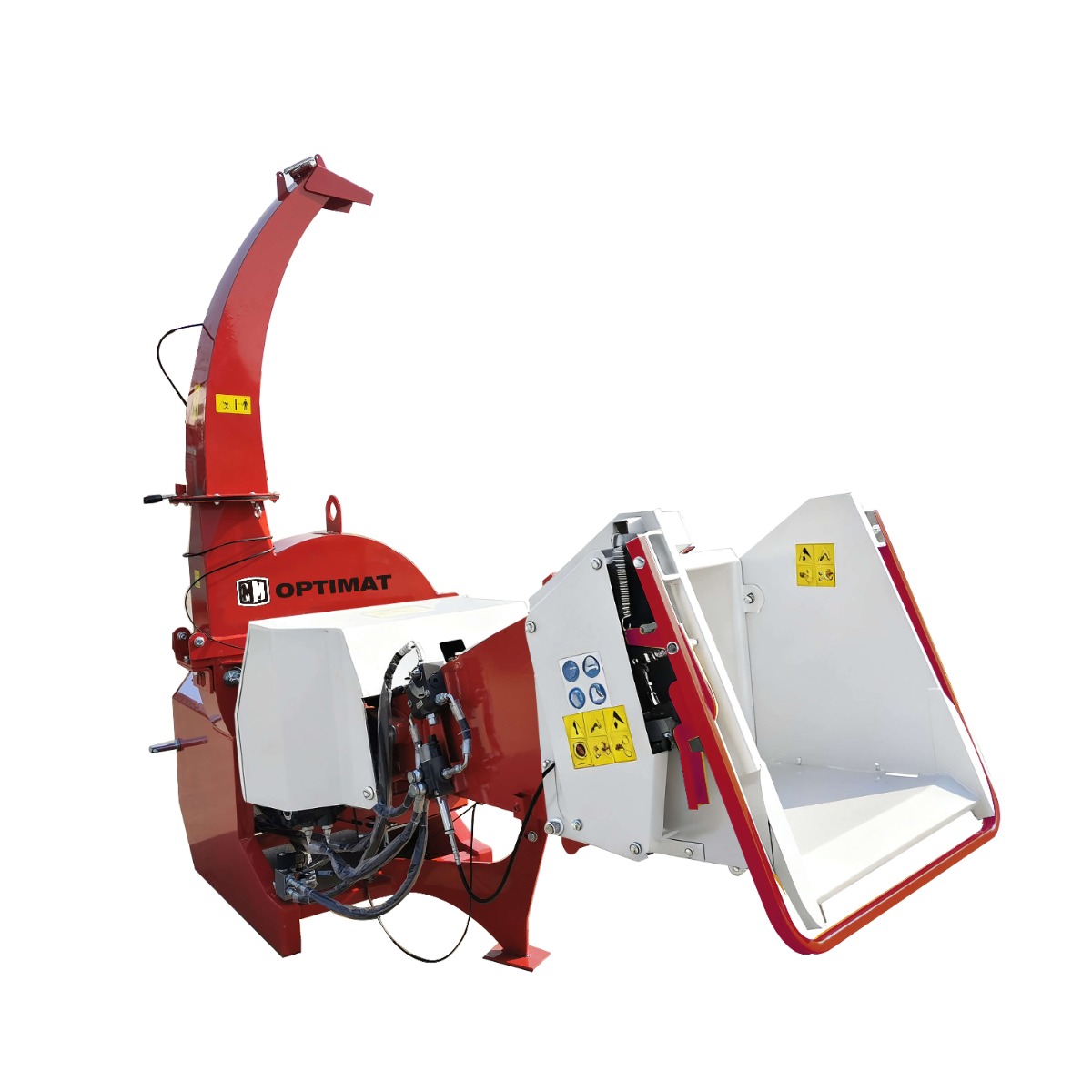 OPTIMAT BIZON 4 to nowoczesny, wzmocniony rębak tarczowy do gałęzi i pni o średnicy do 120 mm, wyposażony w hydrauliczny system podawania z własną pompą i zbiornikiem oleju. Przeznaczony do współpracy z ciągnikami rolniczymi o mocy minimum 30 KM, gwarantuje wysoką wydajność, bezpieczeństwo i komfort pracy w warunkach profesjonalnych.