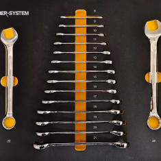- 16 szt. kluczy płasko-oczkowych: 8–9–10–11–12–13–14–15–16–17–18–19–20–21–22–24 mm