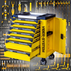 Viber-System SZN254 to wózek narzędziowy klasy premium, stworzony dla wymagających mechaników, serwisów technicznych oraz użytkowników ceniących porządek i efektywną pracę. Solidna konstrukcja ze stali SPCC, wykończona trwałą powłoką proszkową, zapewnia odporność na intensywną eksploatację, uderzenia i korozję – idealny wybór do profesjonalnych warsztatów i garaży.
