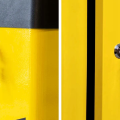 - Centralny zamek + boczna zamykana szafka – ochronisz narzędzia przed niepowołanym dostępem