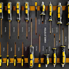 - śrubokręty płaskie, krzyżakowe, Torx i precyzyjne