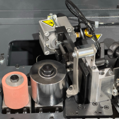 - Wygładza zaokrąglenia po frezarce liniowej. Stosowana wyłącznie do obrzeży z PCV. W prosty sposób daje się mechanicznie wyłączyć nie tracąc swoich ustawień.