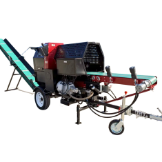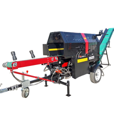 Elektryczna piła‑łuparka 20 ton z hydraulicznym podawaniem, dociskiem i regulacją kąta wyrzutnika. Cicha, wydajna i komfortowa w pracy - idealna do cięcia i rozłupywania drewna opałowego w gospodarstwach i warsztacie.