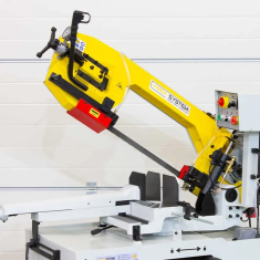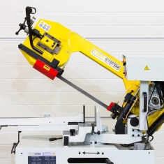 Model wyposażony w hydrauliczny siłownik, tensometr do naciągu taśmy, oraz regulację kąta cięcia do 60°, zapewnia maksymalną wydajność i powtarzalność cięć.