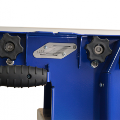 - Wszystkie główne metalowe części maszyny są wykonane ze stali o grubości 2,5 mm, a stoły ze stali o grubości 3,5 mm. Zapewnia to konstrukcji dodatkową sztywność, stabilność i niezawodność.