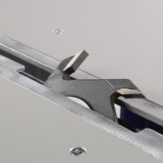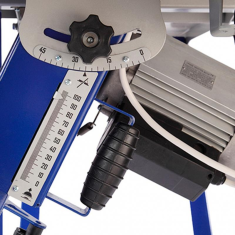 - Maszyna posiada napęd pasowy, co pozwala na zwiększenie wysokości cięcia przy mniejszej średnicy tarczy tnącej. Sprężyna gazowa w maszynie umożliwia łatwą regulację kąta nachylenia.