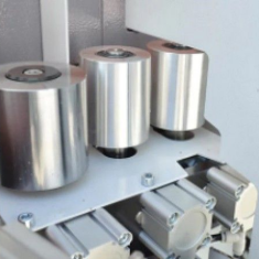 | mechaniczna strefa dociskowa napędzana główną rolką dociskową i serią rolek dociskowch do minimalizacji warstwy kleju | : |