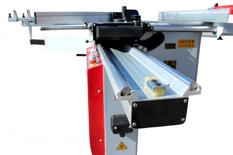 - wygodny, wykonany z aluminium przesuwny stół formatowy z hartowanymi, stalowymi prowadnicami prętowymi,