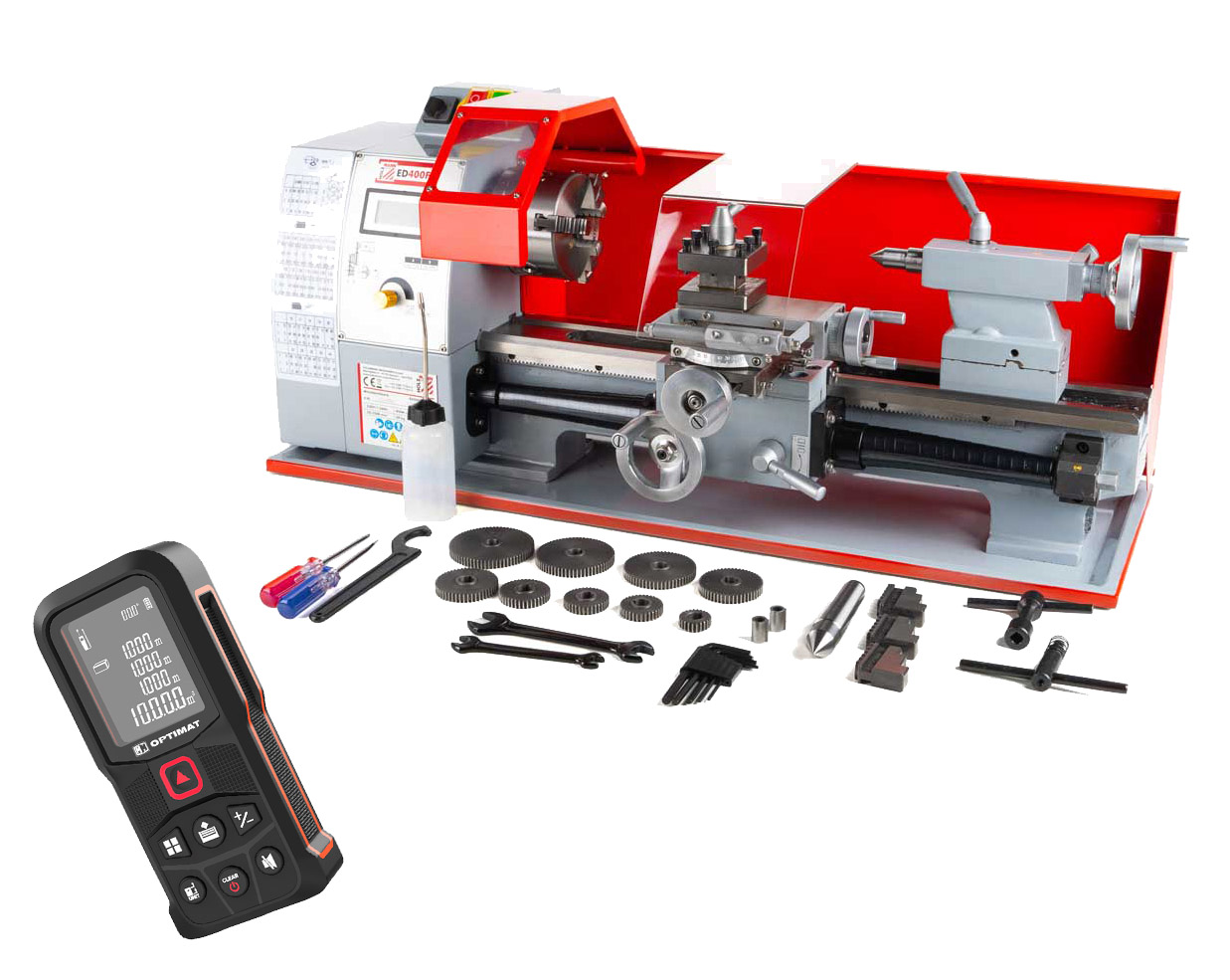 Tokarka do metalu Holzmann ED 400FD, Laserowy przyrząd do pomiaru odległości OPTIMAT, miernik cyfrowy, dalmierz, miara, pamięć, 60m, miarka